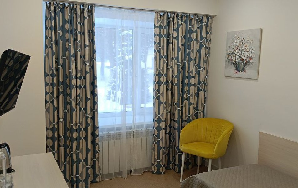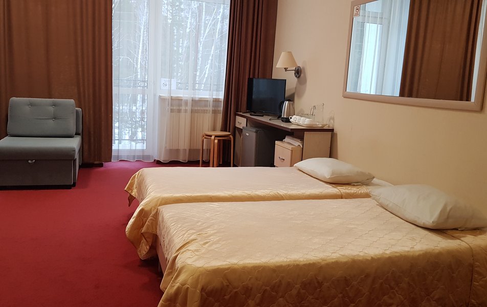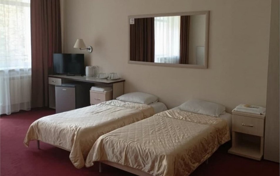 Санаторный комплекс прошел полную реконструкцию и состоит из 2 отдельно стоящих корпусов: 3-этажного первого корпуса, 2-этажного корпуса №2; и 1-этажного деревянного коттеджа «Очарование леса». В обоих корпусах расположены жилые комнаты, в основном корпусе - лечебное отделение, а во втором – бассейн. Номера выполнены в классическом стиле, оборудованы комфортной мебелью и техникой: телевизором, мини-холодильником, электрочайником, феном. Отличаются только номера эконом-класса в корпусе №2, где более скромное оснащение и холодильник установлен на этаже. В коттедже – спальня, гостиная и кухня. Интерьер оформлен в деревенском стиле с преобладанием приятной светлой цветовой гаммы. В доме есть все необходимое: ванная комната с душевой кабиной, кухня с раковиной, электроплитой, микроволновой печью, холодильником, чайником и посудой. Рядом с коттеджем установлен мангал, на крытой веранде стол и скамейки.
