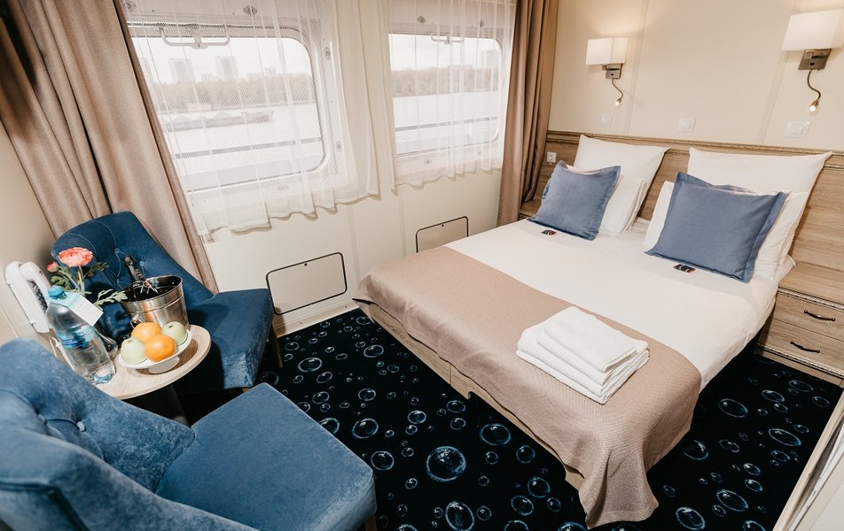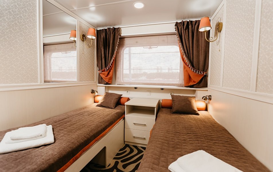 Двухместная каюта увеличенной площади, расположенная на шлюпочной палубе, со всеми удобствами (раковина, душевая кабина, туалет, кондиционер).