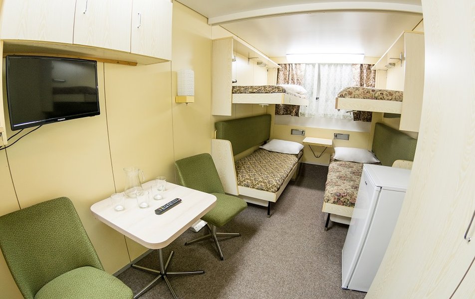 Четырехместная двухъярусная каюта, расположенная на нижней палубе, со всеми удобствами (раковина, душ, туалет, кондиционер).