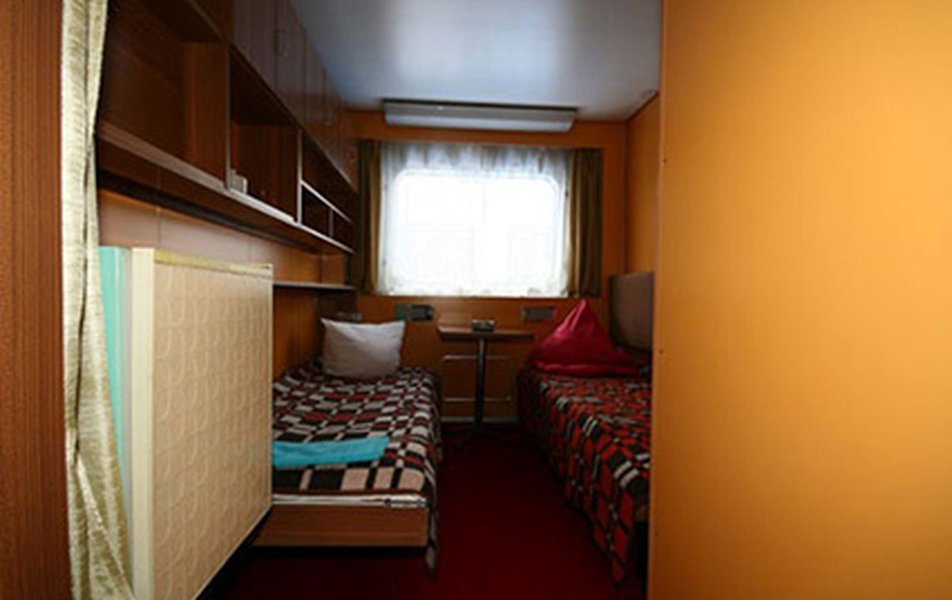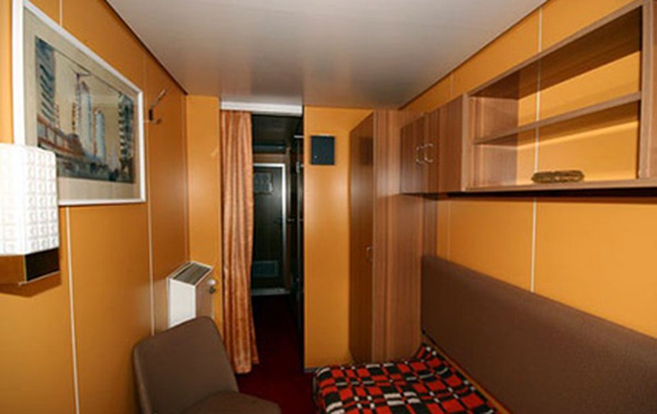 | В каютах | Мебель одно спальное место шкаф для одежды Оборудование кондиционер радио холодильник Санузел с душем |