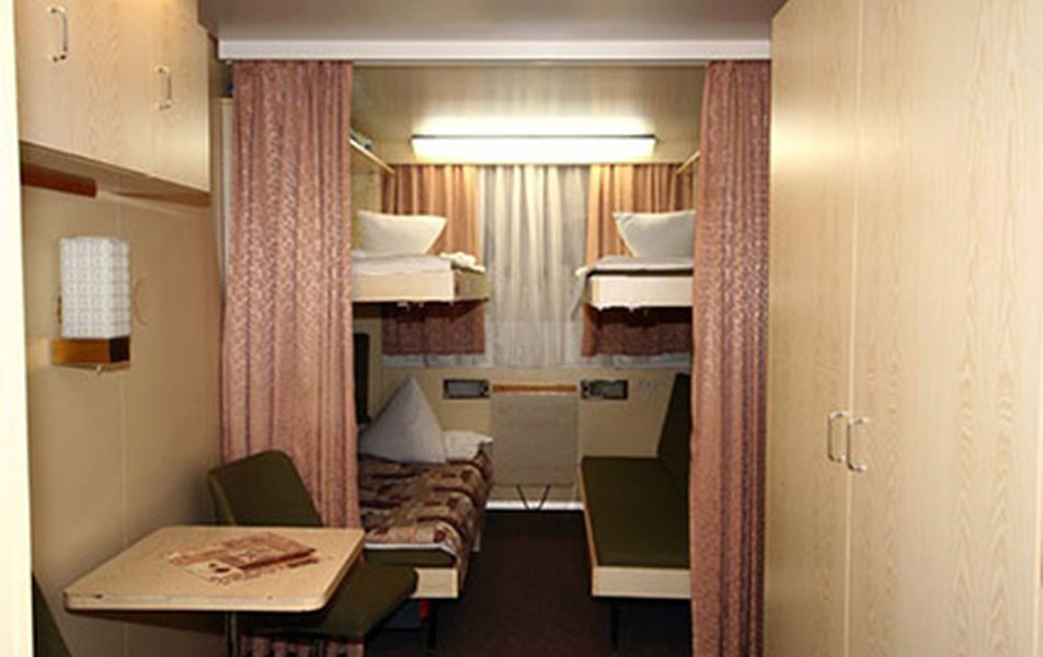 | В каютах | Мебель два спальных места: + 2 полки верхнего расположения шкаф для одежды Оборудование кондиционер радио холодильник Санузел с душем |