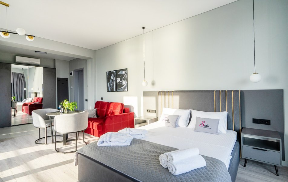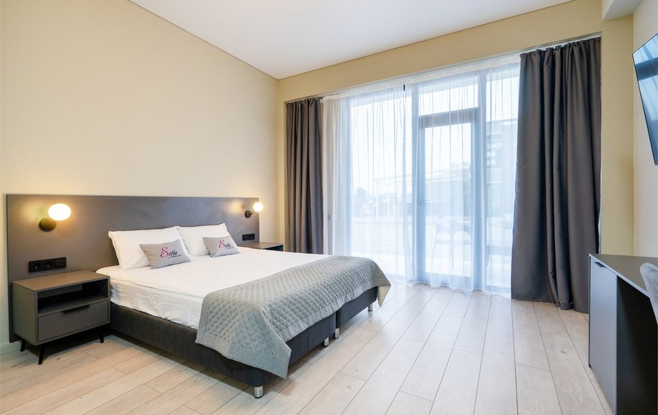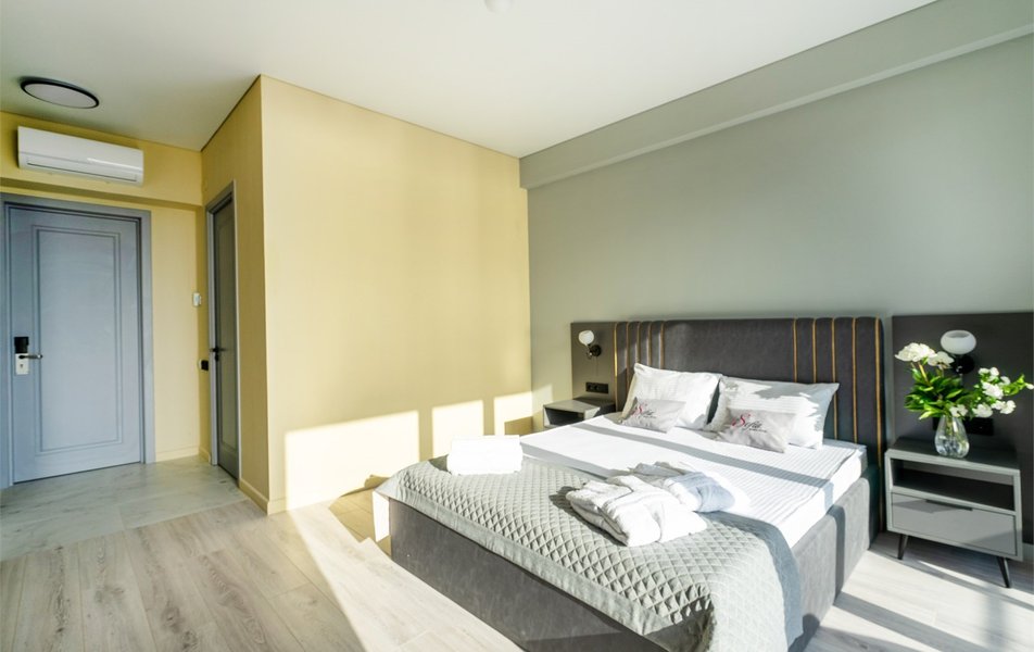 В распоряжении гостей современные номера различных категорий с продуманным оснащением. В каждом номере установлен кондиционер, работающий в составе централизованной системы, и плотные шторы блэкаут, позволяющие создать идеальную темноту для отдыха в любое время суток. Санузел укомплектован феном, набором полотенец и необходимыми гигиеническими принадлежностями. Для удобства постояльцев предусмотрены Wi-Fi, телевизор, а также чайная станция с принадлежностями для приготовления чая и кофе и бутилированная вода.