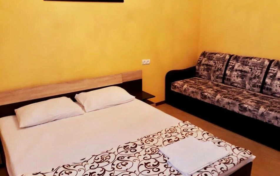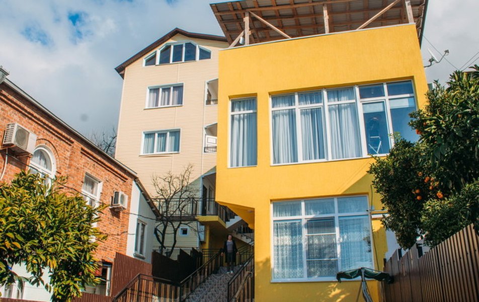 Отель находится на благоустроенной закрытой территории с уголками для отдыха, беседками и скамейками под зеленой листвой. Гостевой дом, ориентированный на семейный отдых с детьми, состоит из двух 2-этажных корпусов. Во дворе отеля растет роскошное мандариновое дерево, плодами которого любят лакомиться гости. В жилом фонде отеля – уютные номера с разными вариантами размещения. В каждом номере есть необходимая бытовая техника, удобная мебель, санузел, бесплатный Wi-Fi.