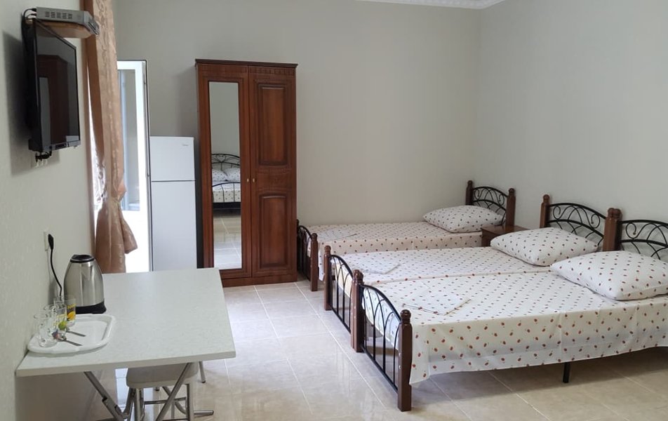 Трехэтажный корпус гостевого дома включает в себя стандартные номера разные по площади и вместимости. В каждом номере предусмотрена ванная комната, также везде есть кондиционер, телевизор с плоским экраном и электрочайник. Некоторые номера выходят на балкон, а из окон других - открывается вид на город.