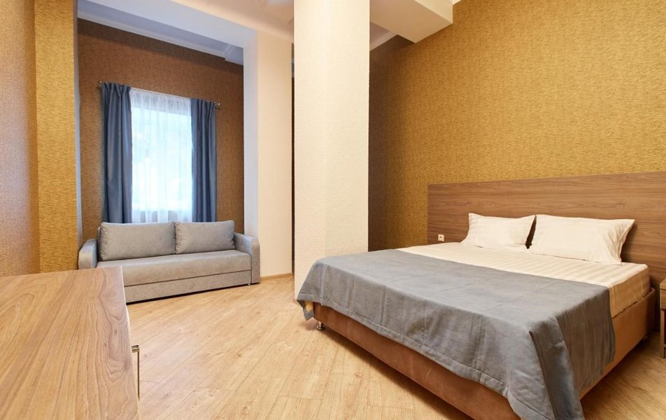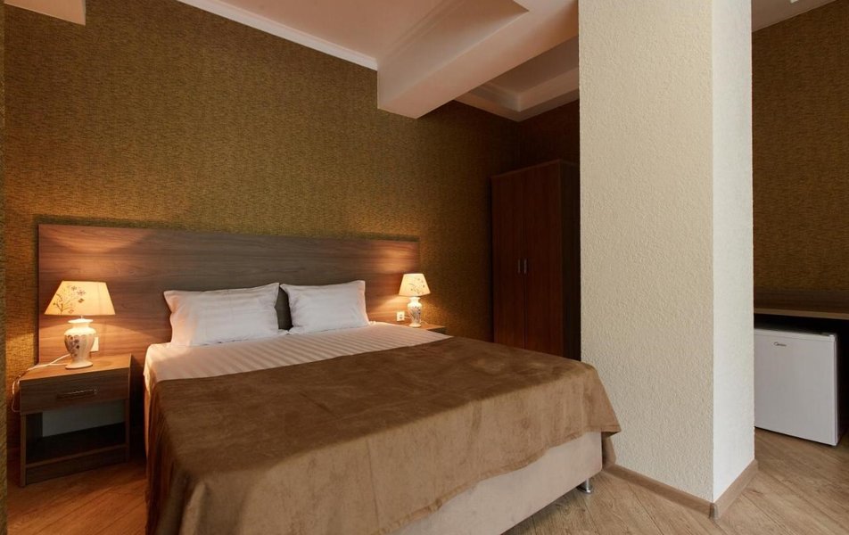 Четырехэтажный корпус отеля занимает небольшую закрытую территорию. Гостей ожидают 39 номеров Стандарт, Полулюкс и Люкс. Номера, выдержанные в пастельной гамме, оснащены душем, кондиционером, бытовой техникой — везде есть холодильник, телевизор, фен.