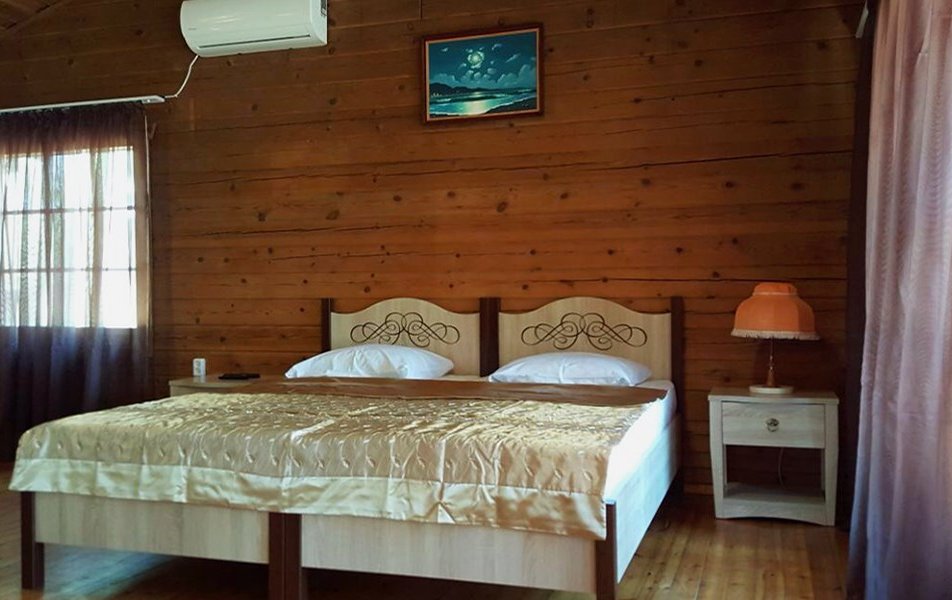 В основном пятиэтажном корпусе представлены различные варианты размещения: от уютных стандартных номеров с балконом или без него до просторных двухкомнатных «Комфорт» и «Стандарт». Отдельного внимания заслуживают деревянные коттеджи площадью 30 квадратных метров, выдержанные в эко-стиле, с собственной террасой. Каждый номер оснащен кондиционером, телевизором, wi-fi, собственным санузлом с феном, а также полотенцами и гигиеническими принадлежностями. Для приятного начала дня предусмотрены чай, кофе и бутилированная вода.