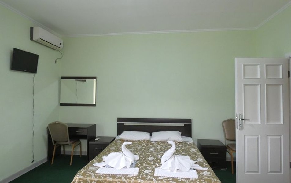Комплекс занимает благоустроенную территорию, на которой расположились 4 двухэтажных коттеджа. Для отдыхающих оборудованы кафе, открытый подогреваемый бассейн, перед корпусами установлены скамейки для отдыха. Гостей ожидают просторные двухместные номера Стандарт, оснащенные душем и кондиционером. В каждом номере имеются холодильник. Для автовладельцев возле корпусов организована охраняемая парковка, на ресепшене можно заказать экскурсии в Пицунду, Гагру и в другие интересные места республики.