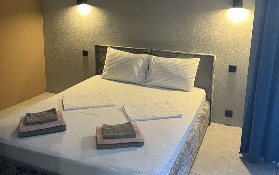 Четырехэтажный корпус отеля занимает благоустроенную территорию всего в 100 метрах от моря. Гости могут разместиться в комфортабельных номерах с удобствами. В каждом номере предусмотрен санузел с душем, есть кондиционер, телевизор. Из комнат, расположенных на верхних этажах, открываются панорамные виды на море.