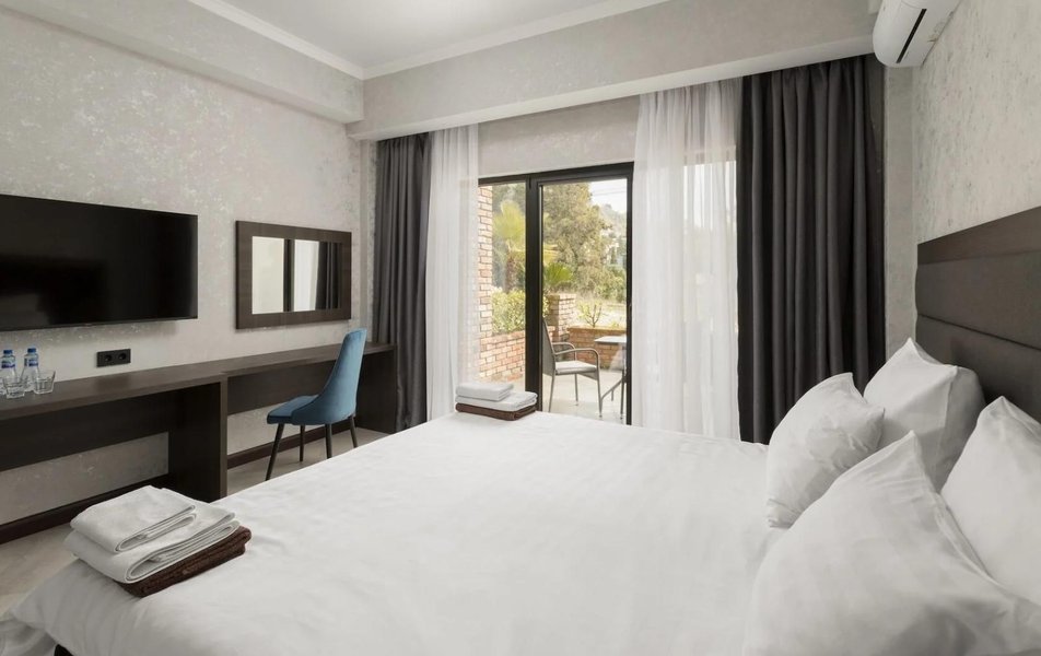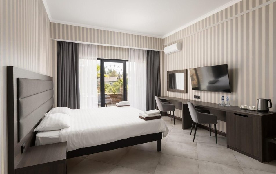 На первом этаже отеля работает ресторан с террасой, в котором подаются блюда европейской и местной абхазской кухонь, можно попробовать вкуснейший хачапури-лодочка. Среди услуг — подогреваемый бассейн, который работает круглый год и охраняемая автостоянка.