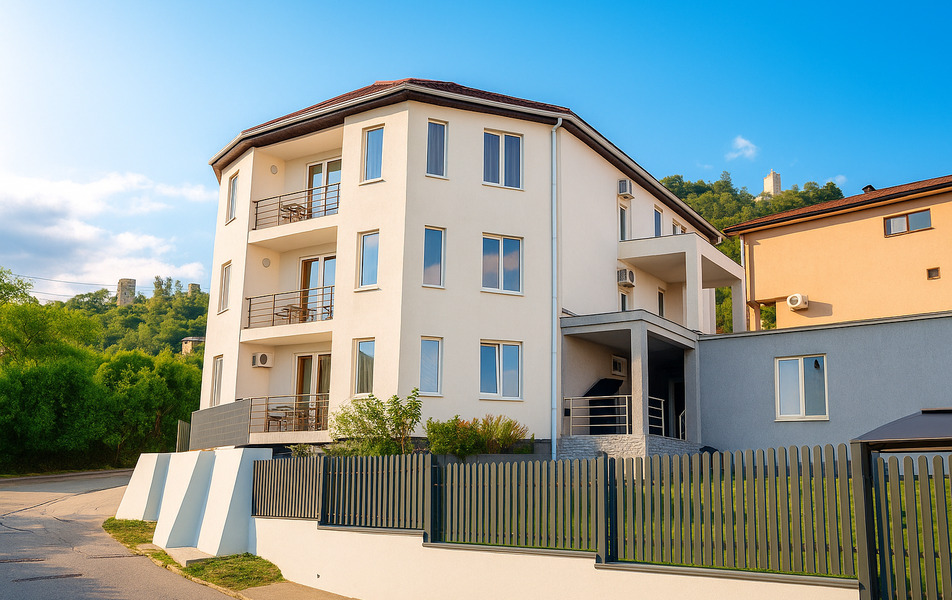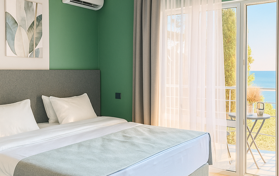 Отель расположен на живописной возвышенности Нового Афона — рядом с легендарной Новоафонской пещерой, древней Анакопийской крепостью и панорамным видом на Чёрное море.