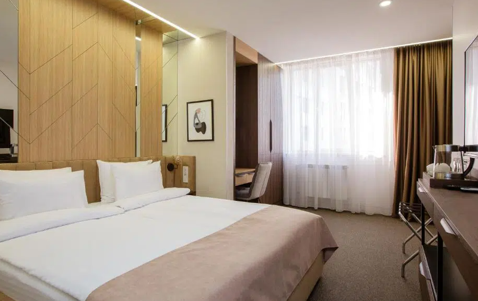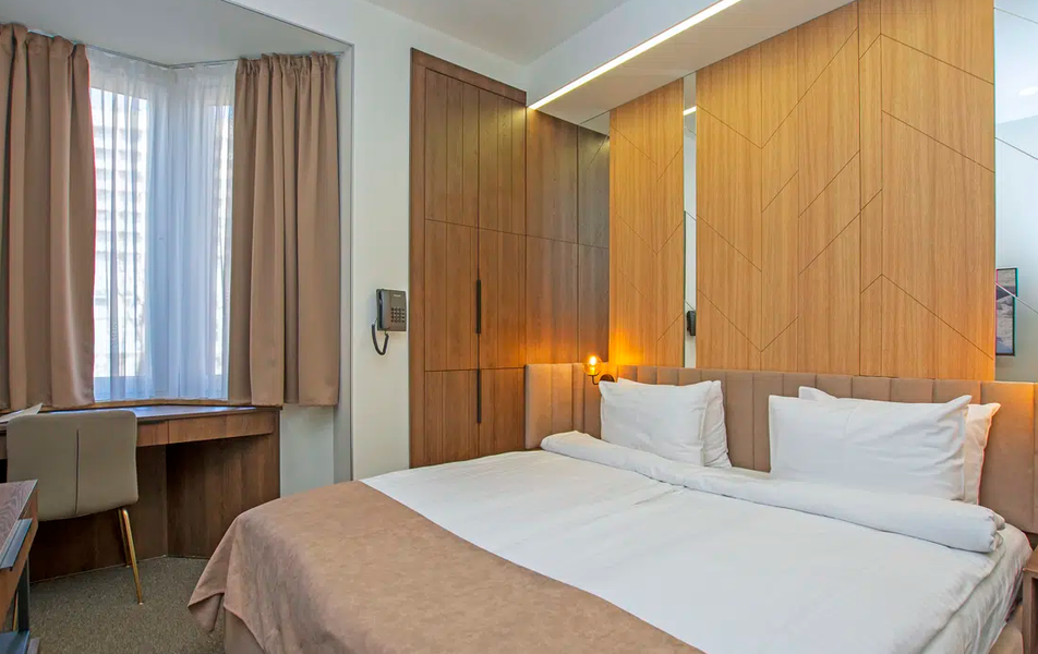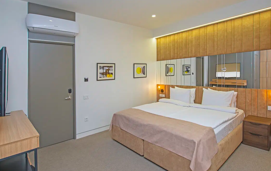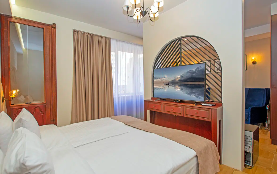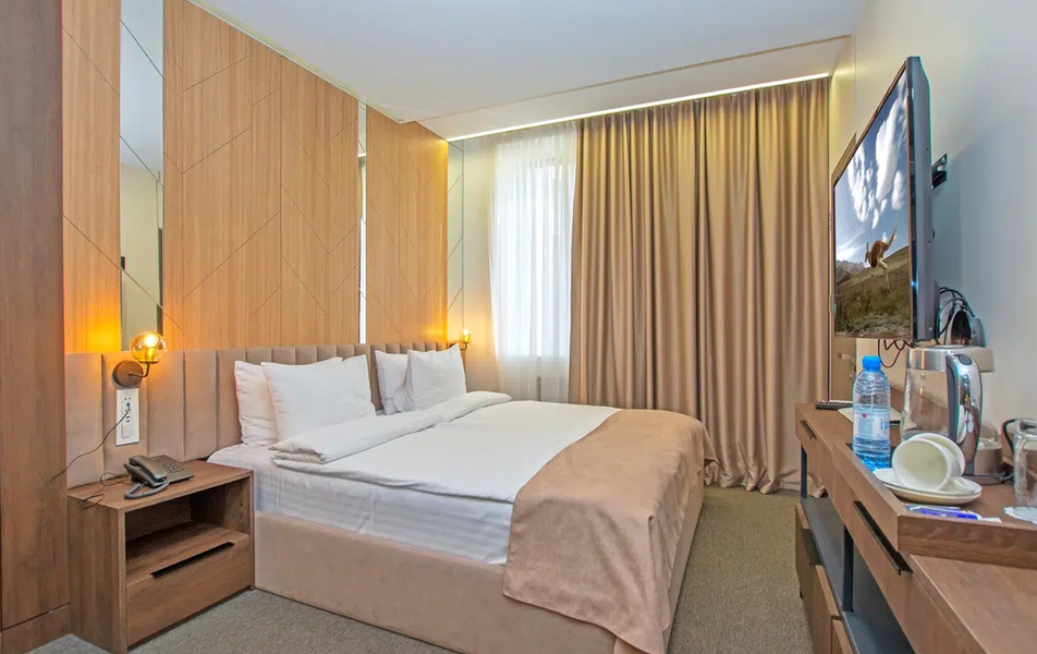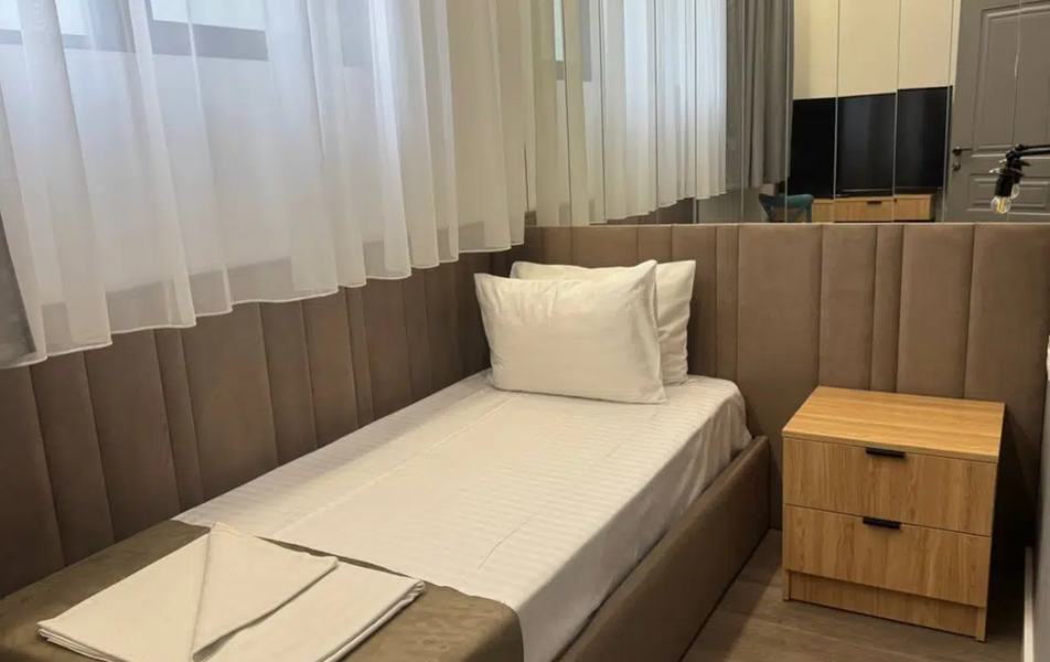 Номера отеля это современные и уютные пространства, где каждая мелочь продумана для комфорта. Гостей ждут удобная мебель, телевизор, холодильник и собственная ванная комната с душем. Для тех, кто ценит самостоятельность, предусмотрены номера с собственной кухней. Бесплатный Wi-Fi доступен на всей территории отеля.