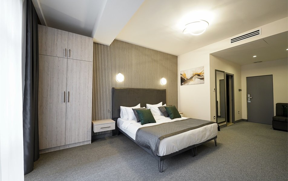 Номерной фонд отеля представляет на выбор 52 номера различных категорий. Все номера оснащены электронной системой доступа в номер, сейфом, качественной мебелью, ванной комнатой со всеми принадлежностями, кабельным телевидением и высокоскоростным интернетом Wi-Fi с неограниченным подключением устройств.