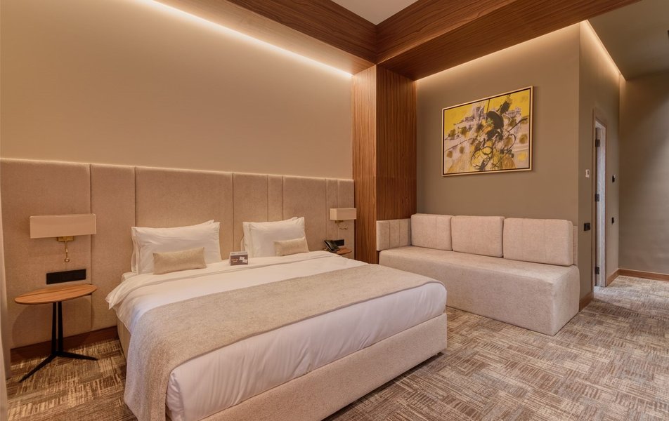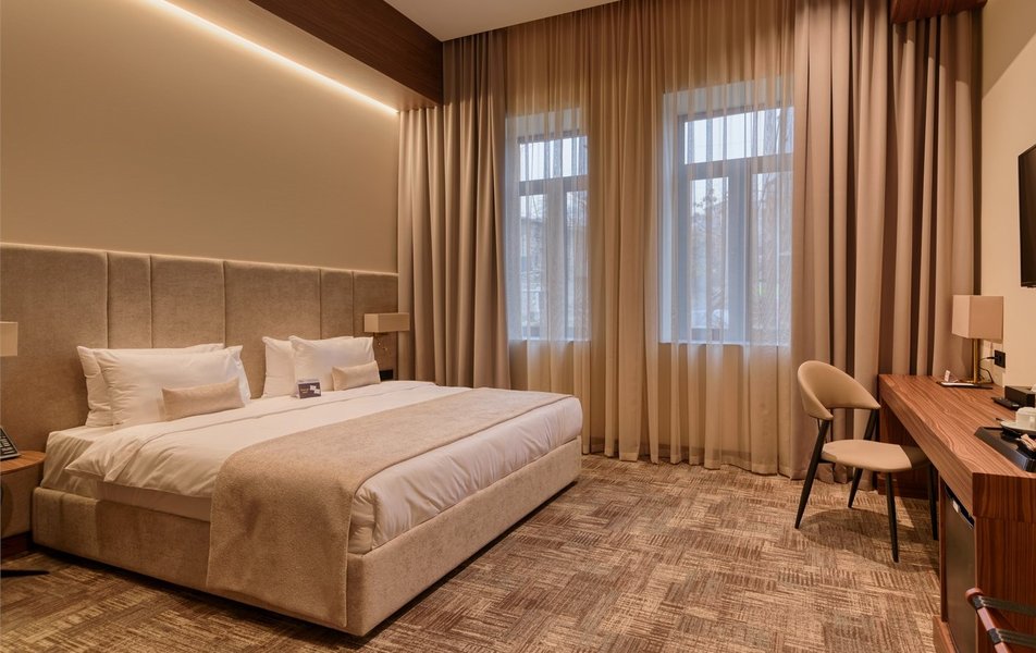Здесь можно остановиться в номерах различных категорий — от уютных стандартных комнат с двуспальными или раздельными кроватями до просторных сьютов с гостиными зонами и улучшенных номеров категории Superior. Особое внимание уделяется доступной среде: для гостей с ограниченными возможностями предусмотрен специально оборудованный номер категории Deluxe.
