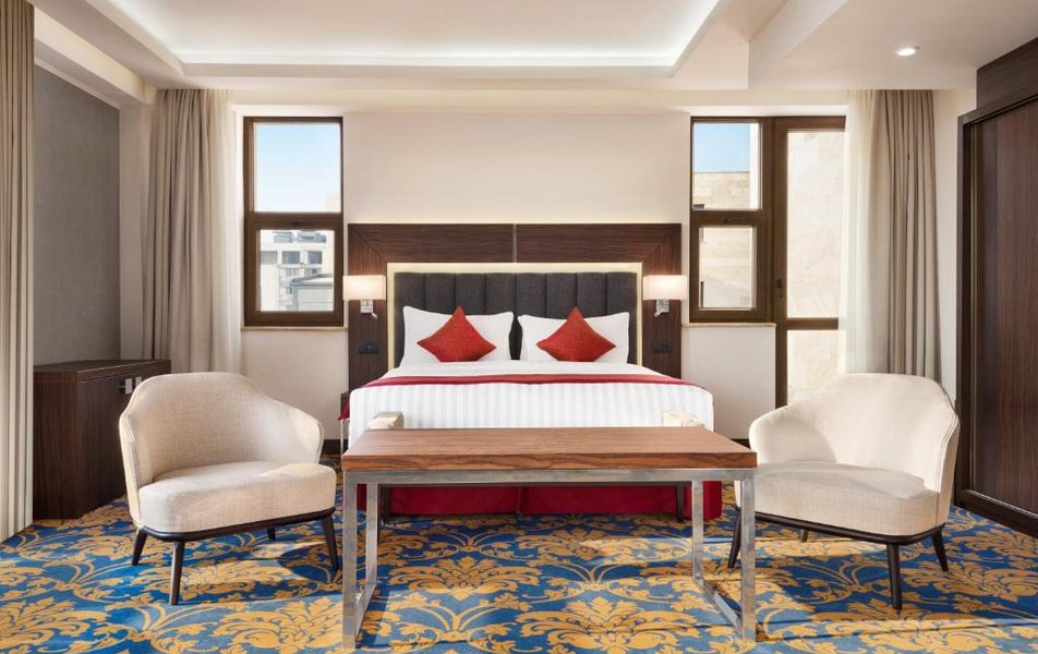 Отель «Рамада бай Уиндхэм» находится в центре города Ереван, что позволяет насладиться прогулкой по главным достопримечательностям перед сном. Рядом с гостиницей расположены Государственная картинная галерея, площадь Республики и Голубая мечеть, которые стоит посетить во время отдыха. В непосредственной близости работают кафе, магазины, рестораны и многое другое.