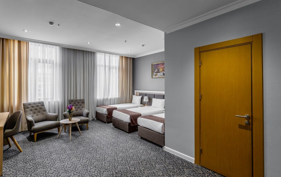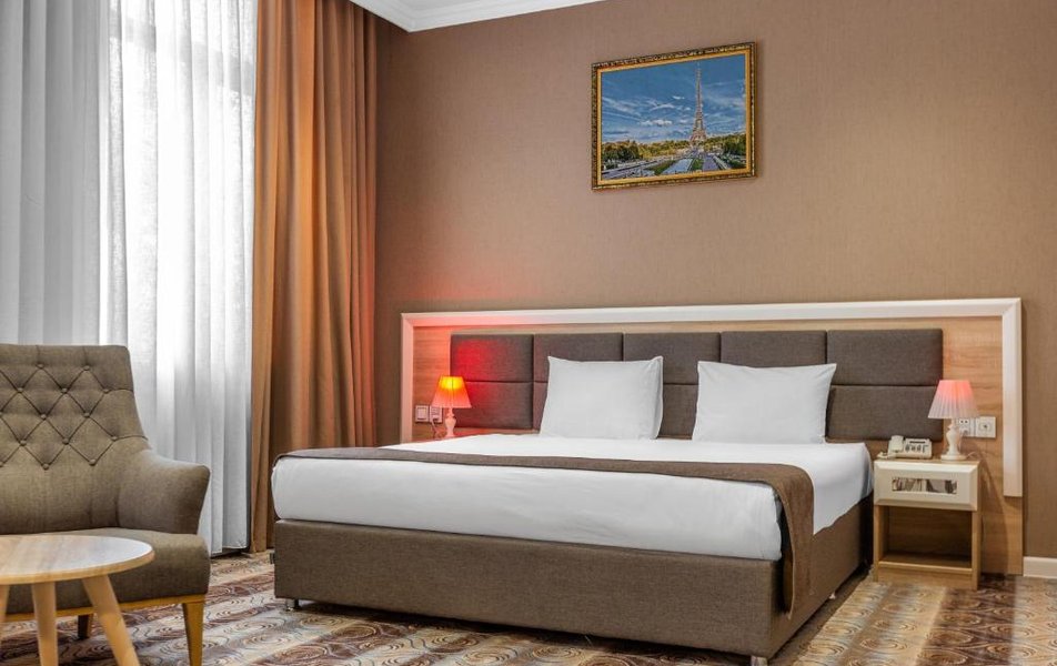 Гости могут остановиться в просторных номерах, где каждая деталь продумана для их удобства. Здесь установлен кондиционер, телевизор и сейф для личных вещей, есть письменный стол для работы, чайник для приготовления горячих напитков и мини-бар. В собственной ванной комнате с душем гости найдут комплект туалетно-косметических принадлежностей, а для хранения вещей предусмотрен платяной шкаф.