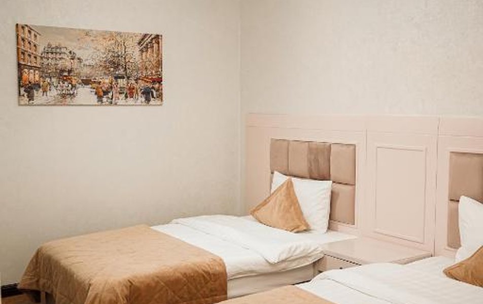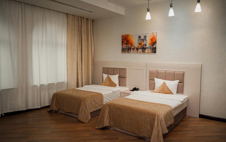 Отель разместился в семиэтажном здании, возвышающимся на улице Джейхун Хаджыбейли. В распоряжении гостей 49 комфортабельных номеров, рассчитанных на разное число гостей. В каждом номере установлен кондиционер, есть плазменный телевизор и электрочайник. В ванных комнатах для отдыхающих подготовлены косметические наборы, тапочки и халаты.