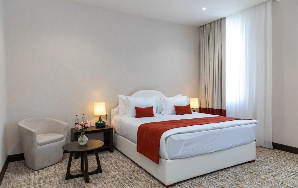 Располагаясь в центральной части города Ханкенди, этот отель занимает удобную позицию для тех, кто ценит время и комфорт. В шаговой доступности от комплекса находятся основные городские достопримечательности, что делает прогулки к местам притяжения легкими и приятными. Рядом с отелем расположены продуктовые магазины, уютные кафе, аптека и остановки общественного транспорта, а наличие собственной парковки обеспечивает спокойствие гостей с личным автотранспортом.