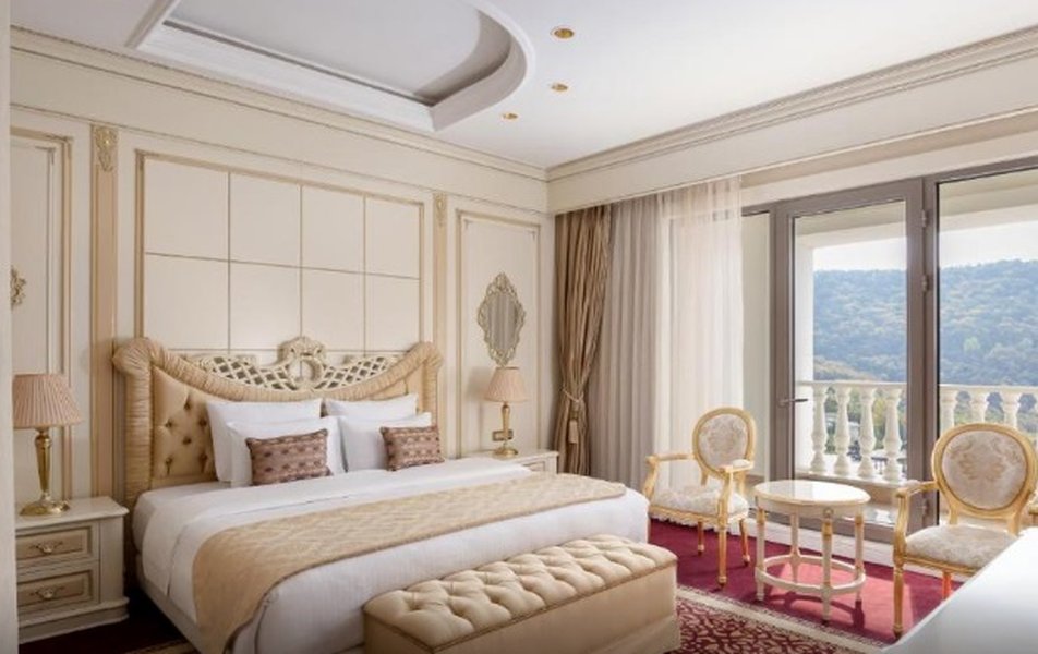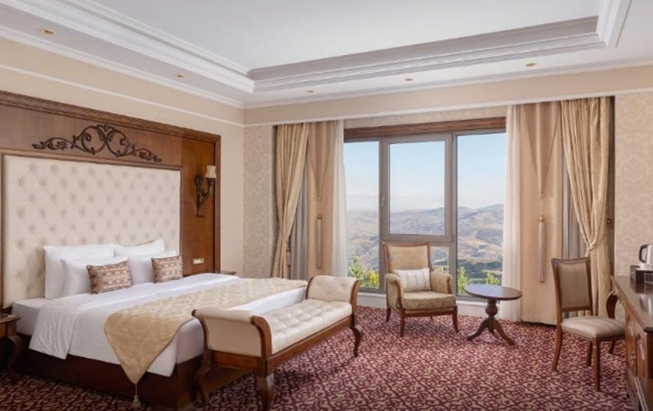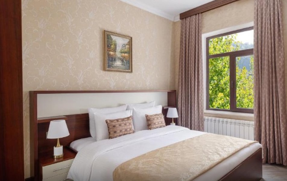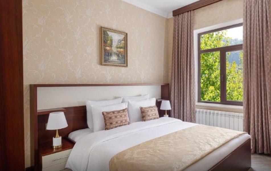 Для размещения гостей предоставлены 106 номеров в главном 7-этажном корпусе с лифтом, а также 12 отдельно стоящих коттеджей. Все комнаты оснащены дизайнерской мебелью, в них есть мини-бар, телевизор с кабельными каналами, кондиционер, балкон с великолепным видом на горы. Санузел индивидуальный для каждого номера, с душем или ванной. Гостям предоставляются туалетно-косметические принадлежности, полотенца, тапочки, мягкие халаты. В домиках предусмотрена кухня для самостоятельного приготовления еды, а также обеденная зона.