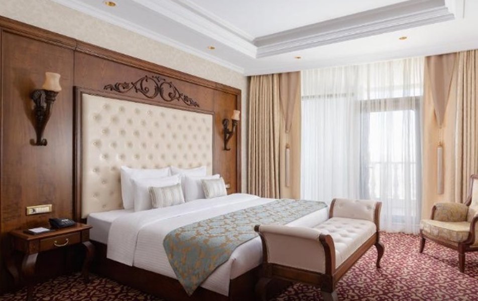 | Рестораны и бары | бар у бассейна: POOL BAR основной ресторан: WHITE DIAMOND, открытый буфет с широким выбором блюд на завтрак и ужин паб: B&B PUB спиртные напитки и закуски ресторан: SHARADIL KEBAB & STEAK HOUSE, разные национальные блюда Азербайджанской традиционной кухни и Стейки высокого качества. WELCOME BAR & LOUNGE Находясь на первом этаже, Welcome Lounge & Bar спокойное и тихое место для встреч в самом сердце отеля |