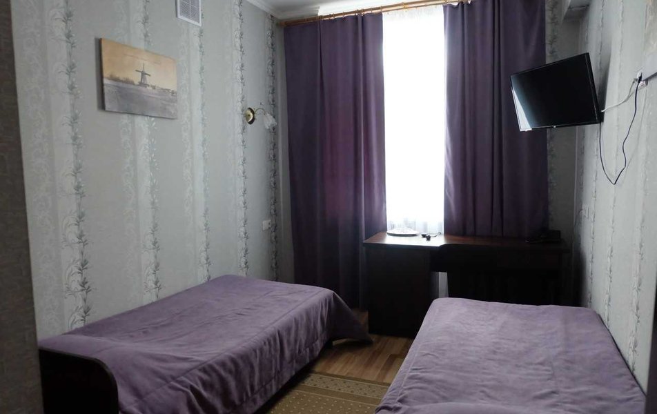 Однокомнатный двухместный номер со всеми удобствами . Окна номеров выходят на улицу или парковку. В номере: две односпальные кровати размером 90 х 200, душ, фен, холодильник.