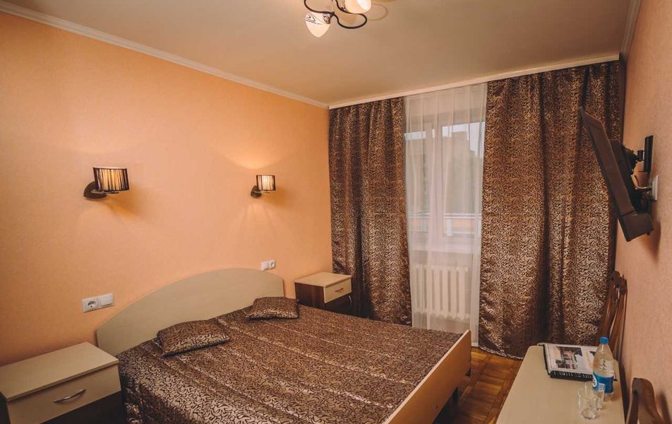 На благоустроенной территории разместились 5 жилых корпусов, разной этажности. Все корпуса связаны переходами друг с другом и с лечебным корпусом. Также на территории работают магазины, аптечный пункт, парикмахерская. Жилой фонд, способный единовременно разместить более 260 человек, предлагает гостям двух- и трехместные стандартные номера. Все номера оснащены собственным санузлом с душем, телевизором, мини-холодильником и балконом.