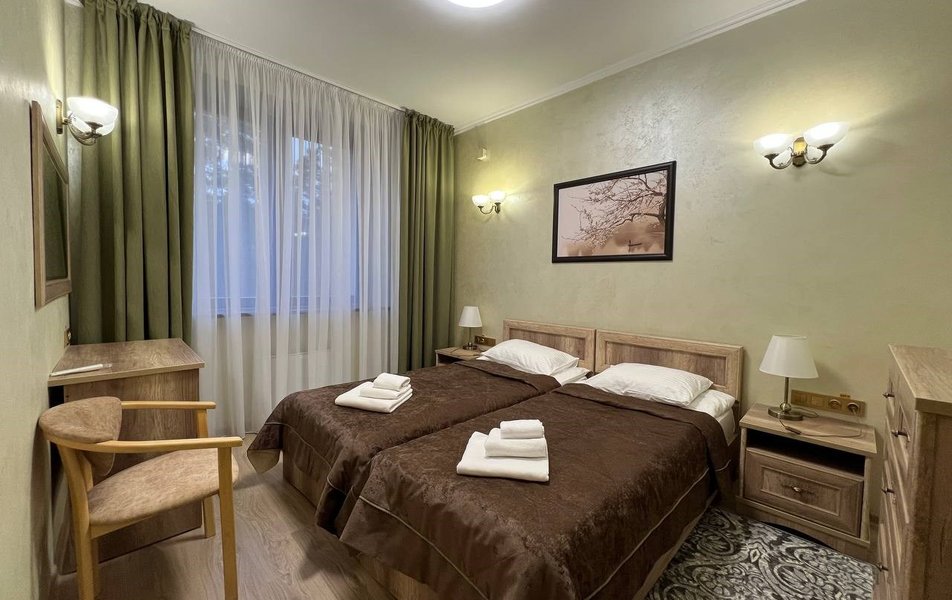 | Сервис | Wi-Fi бесплатно: платно смена полотенец: 1 раз в 3 дня смена постельного белья: 1 раз в неделю уборка номера: ежедневно услуги телефонной связи по территории отеля |