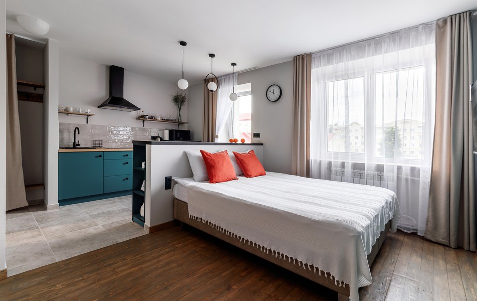 «Апартаменты на Ожешко 39А/1» готовы принять гостей в сердце одного из самых умиротворенных уголков Гродно, где тишина улицы гармонично сочетается с щедрой зеленью окружающего ландшафта. Выгодное расположение обеспечивает легкую связь со всеми ключевыми точками города, превращая каждую поездку в удовольствие. Пространство, оформленное в лаконичном современном стиле, наполнено заботой о деталях — здесь каждая вещь на своем месте, создает атмосферу продуманного уюта. Панорамные окна дарят интерьерам обилие естественного света и открывают перспективу на живописные виды, меняющие свой характер в зависимости от времени суток.