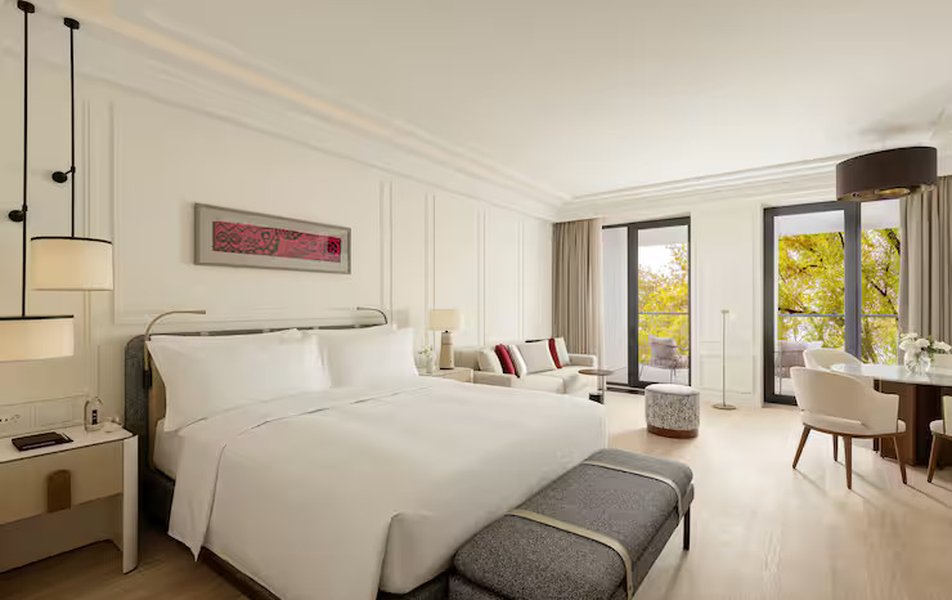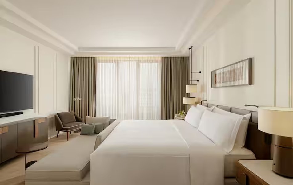 Внутри царит атмосфера сдержанной роскоши, где бархат и мрамор соседствуют с работами современных художников. Каждый из полутора сотен номеров, включая эксклюзивные сьюты, продуман до мелочей: от эргономики пространства и технологий «умного дома» до меню подушек и премиальной косметики в ванных комнатах. В некоторых категориях номеров приятным бонусом становится бесплатное наполнение мини-бара.