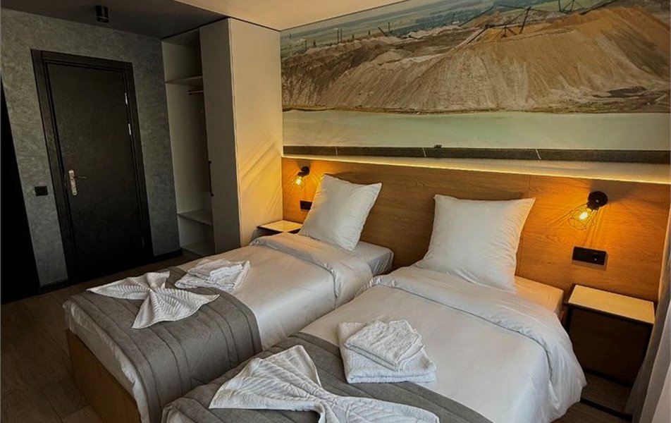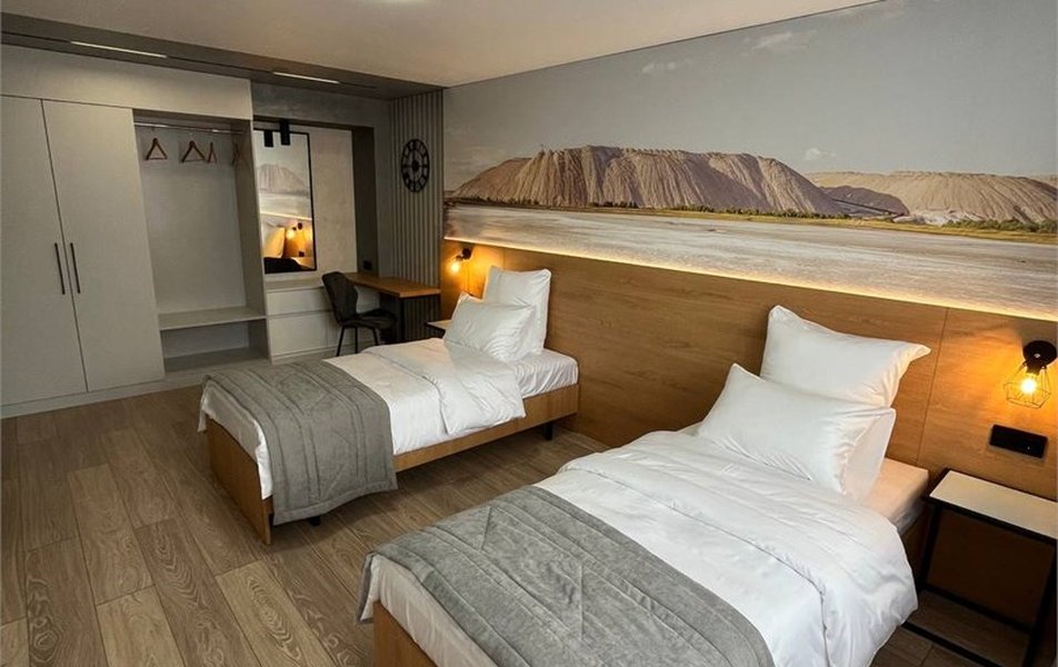Гостиница «Шахтер» располагается в самом сердце Солигорска, являясь неотъемлемой частью городского пейзажа и его истории. Она встречает гостей атмосферой спокойствия и основательности, свойственной этому шахтерскому краю. Просторный холл с мягким освещением и добротной мебелью настраивает на размеренный отдых после долгой дороги.