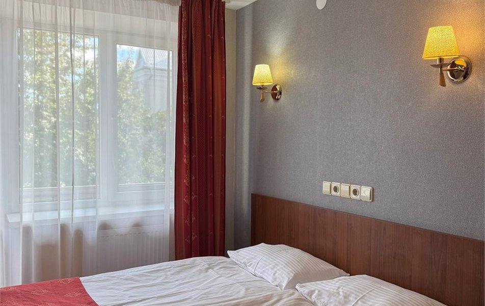 Здание отеля возвышается на Советской улице. В распоряжении гостей классические номера с удобствами. В каждом имеется санузел с душем, фен, телевизор, холодильник.