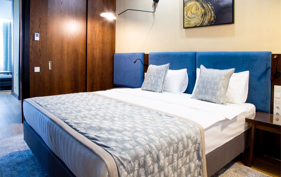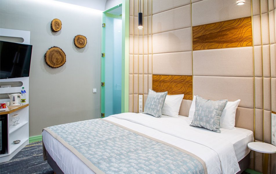 Пятиэтажное здание отеля находится напротив небольшого соснового сквера. В распоряжении гостей одноместные и двухместные номера со стильными интерьерами. Все номера оснащены санузлом с душем, есть кондиционер, фен, плазменный телевизор.