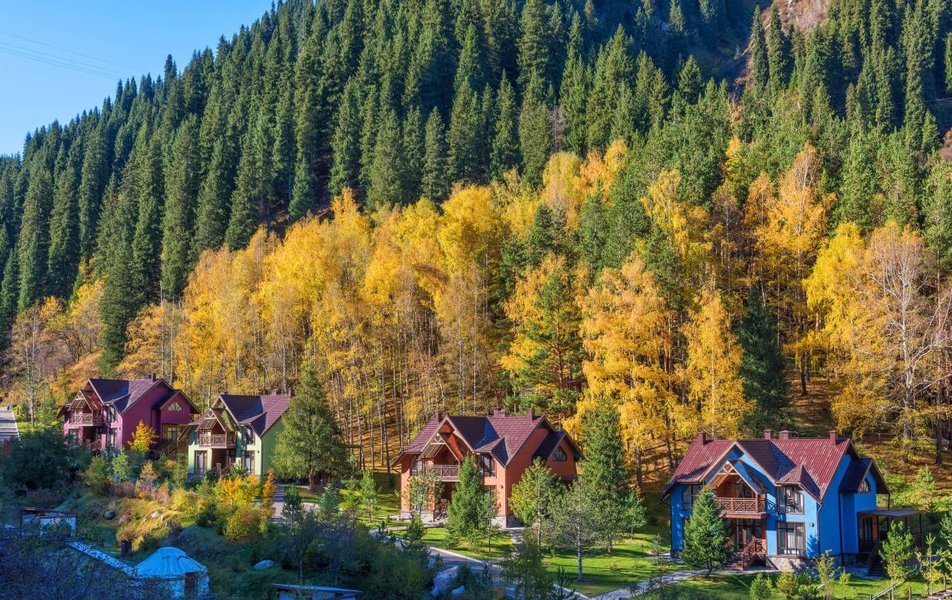 Зимой — 28 километров горнолыжных трасс, канатные дороги, сноутюбинг и прокат снаряжения, а со смотровых площадок открываются панорамные виды на горы и Алматы. Летом курорт превращается в пространство для приключений: троллейный парк протяжённостью 2903 метра, скалодром на естественном рельефе, конные прогулки и этно-SPA «Umai» в традиционных казахских юртах. Здесь же расположена самая большая в мире юрта с рестораном внутри и уникальная «Деревенька на деревьях» — первый в Казахстане эко-отель под кронами сосен.