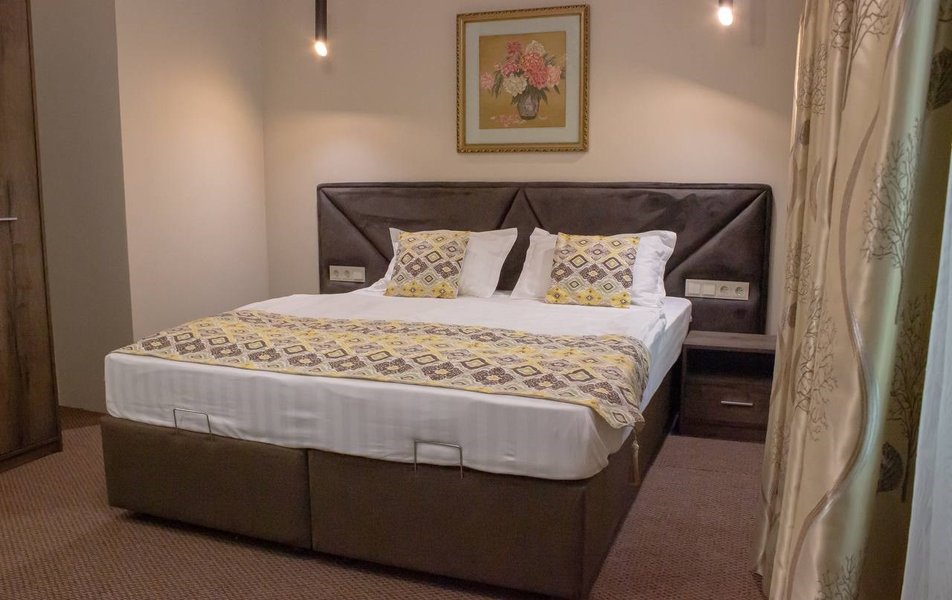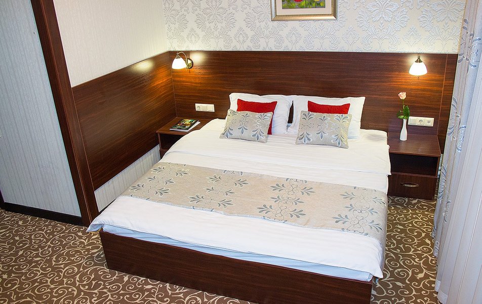 Отель предлагает стильные и уютные номера категории Стандарт. Каждый номер продуман до мелочей для максимального комфорта: удобная мебель, кондиционер для поддержания идеальной температуры, телевизор для досуга и собственная ванная комната с душем.