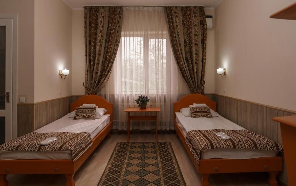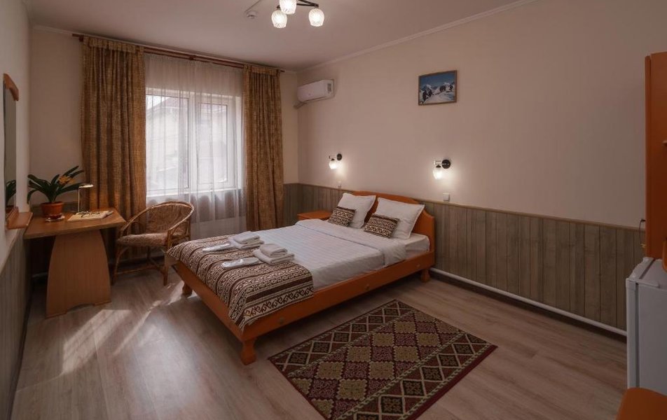 Поездом до ж/д вокзала г. Бишкек, далее пройти пешком 1000 м до отеля.