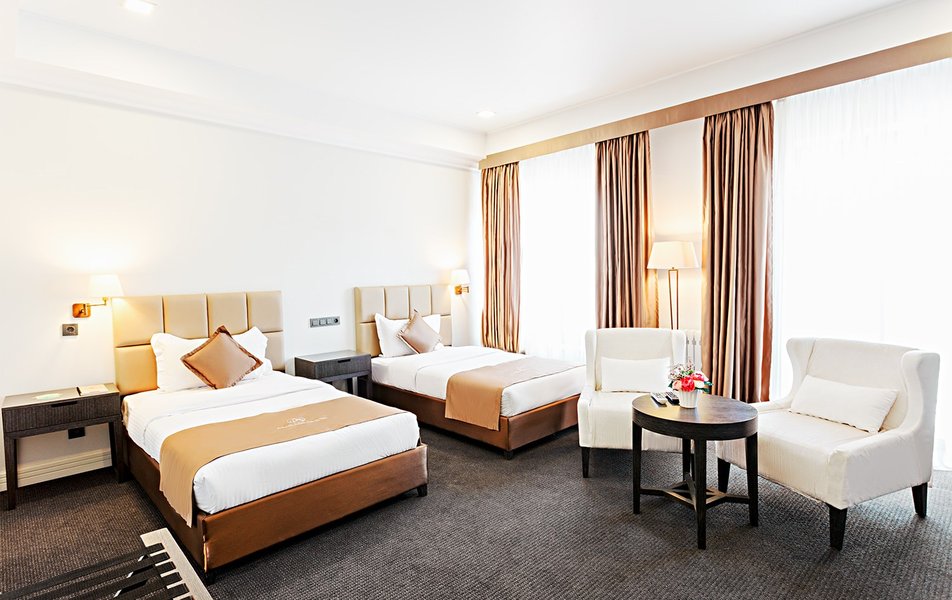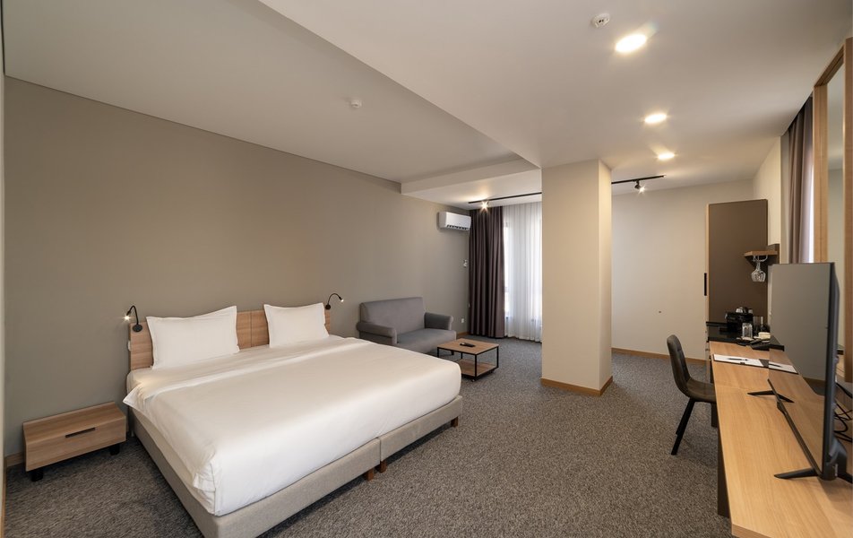 Четыре звезды отеля — это не просто категория, а обещание безупречного сервиса. Просторные номера становятся тихим убежищем после насыщенного дня, а с крыши, на террасе панорамного бара «Times», открывается захватывающий вид на вечерний город. В легкой прохладе, устроившись в мягком кресле, можно наблюдать, как огни Бишкека зажигаются один за другим, в то время как шеф-повара создают свои фьюжн-шедевры — от изысканных закусок до сочных стейков с хоспера.