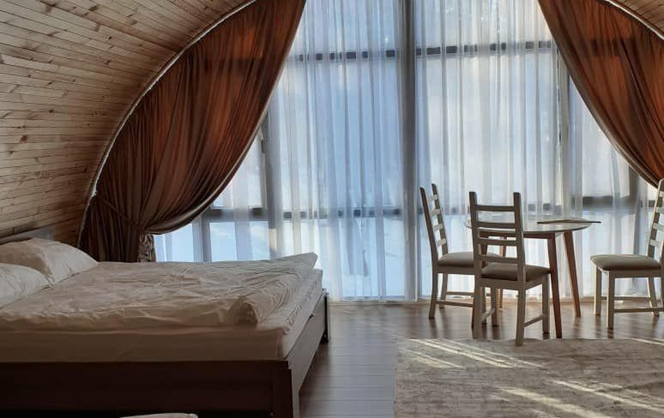 Городок, состоящий их 33 коттеджей, был построен по последним технологиям строительства и отвечает международному стандарту. На территории представлены 3-, 4-, 6- и 12-ти местные коттеджи, ресторан с европейской и национальной кухней, прокат горнолыжного снаряжения. В номерах предусмотрено все необходимое для комфортного проживания - собственная ванная комната с душем, удобная мебель, цифровое ТВ, чайник. Часть коттеджей оборудована кухонными зонами. Есть варианты минималистичного размещения - домики капсульного типа.