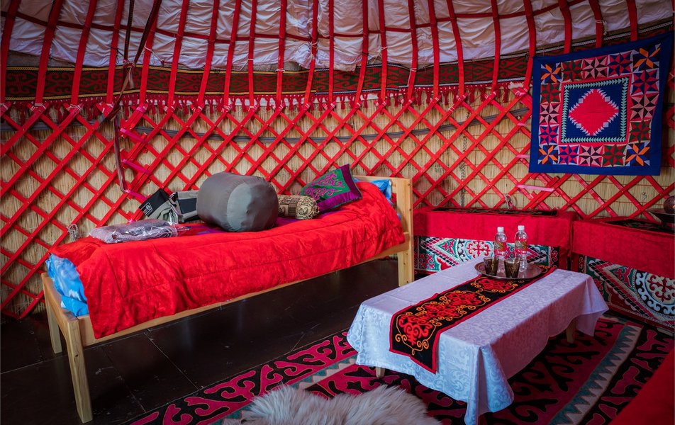 Наши юрты украшают национальные орнаменты и ручные изделия кыргызских мастеров, а питание включает блюда, приготовленные по домашним рецептам. Всё — от свежего айрана до ароматного бешбармака — позволяет прикоснуться к культуре страны не только через зрение, но и через вкус.