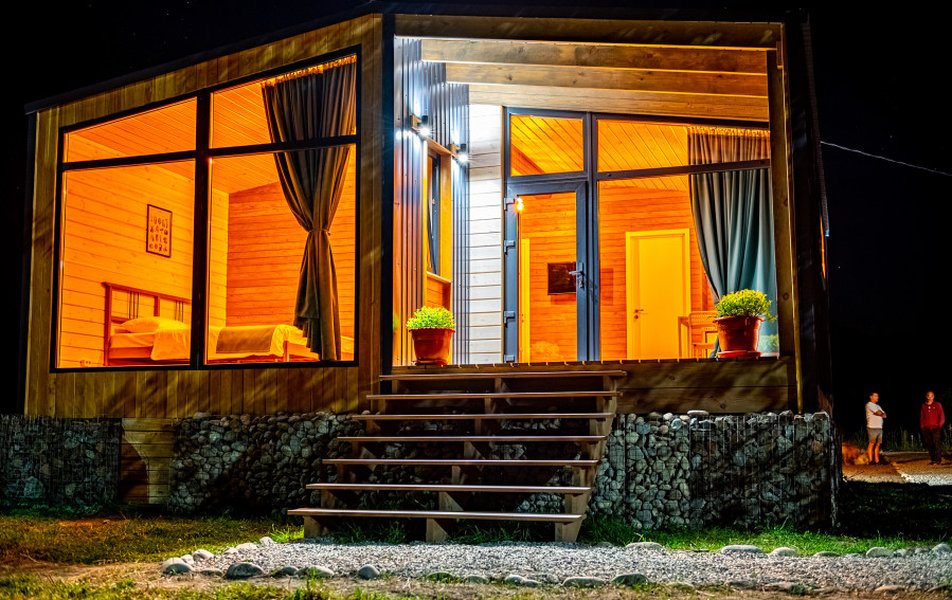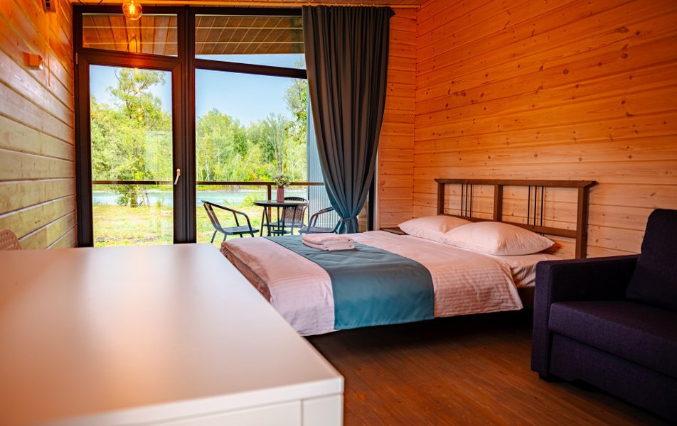 Комплекс предлагает для размещения домики с панорамными окнами и видом на р. Катунь. Каждый домик оборудован террасой, внутри – удобная мебель, ТВ, холодильник, чайник, ванные комнаты с душевыми кабинами. Для удобства гостей номера дополнительно укомплектованы мини-кухнями с набором посуды, микроволной печью и чайником.