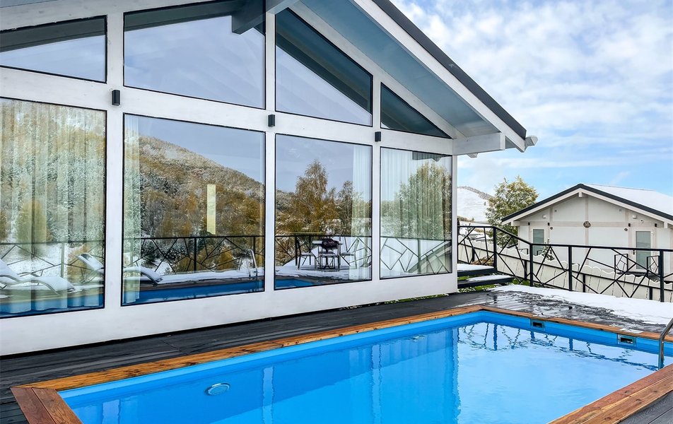 Гордостью комплекса является открытый круглогодичный бассейн с видом на парк маралов и четыре открытых летних бассейна с подогревом. Для детей оборудована отдельная чаша для купания рядом со взрослыми. Тренажерный зал оснащен многофункциональными тренажёрами: зона кардио-, силовых тренажеров и свободных весов. Тренировки возможны как с инструктором, так и самостоятельно. Уличная спортплощадка также мультифункциональна.