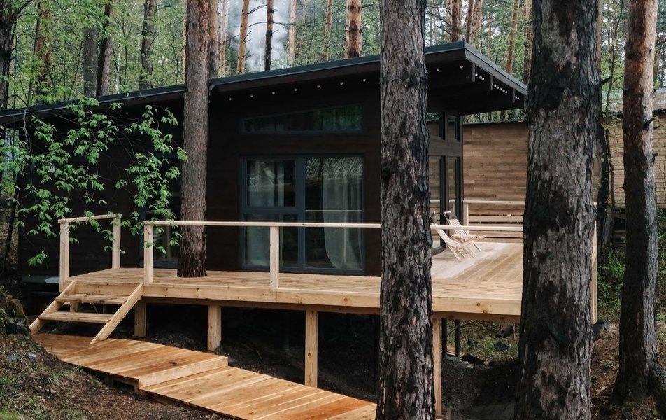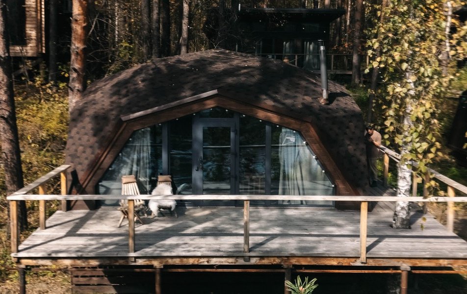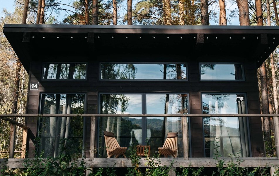 Отель стоит на берегу реки Катуни, в окружении незабываемых алтайских пейзажей. Уникальный архитектурный стиль отеля, гармонично вписанный в природный ландшафт, представлен домами в формате афрейм, барнхаус, бунгало и оригинальными домами с полукруглыми крышами. Дома оснащены всем необходимым – установлены теплые полы, есть чайная станция, телевизор, в санузлах – душевая кабина, фен, предметы гигиены и набор полотенец. Во многих номерах - камин и своя мини-кухня. Каждый дом имеет свою террасу или балкон.