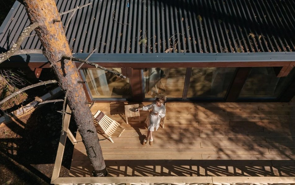 Отель подходит для проведения ретритов, йога-туров, конференций и даже свадеб. Есть теплый зал для практик и площадка в лесу. Для гостей организуются экскурсии, прогулки на лошадях, рыбалка.