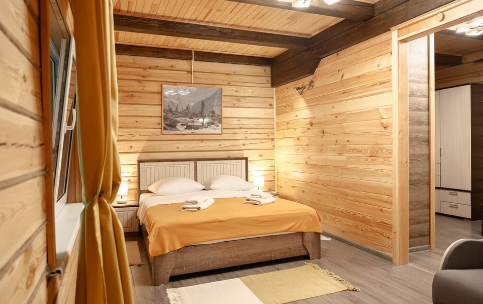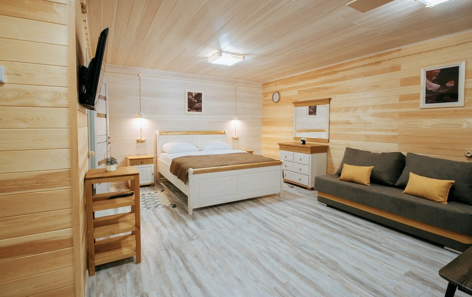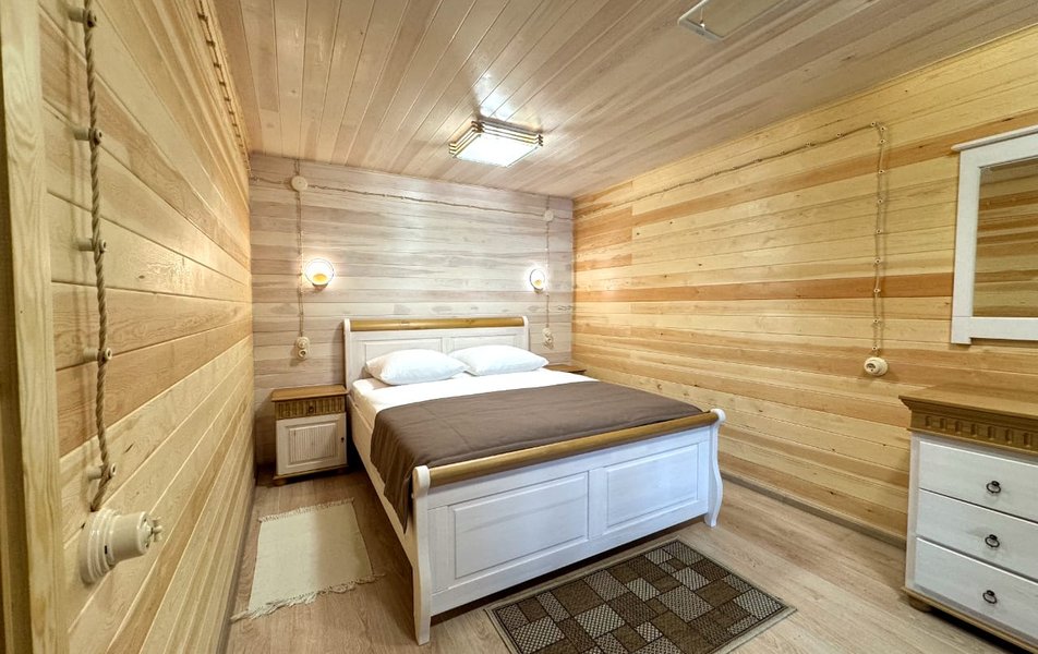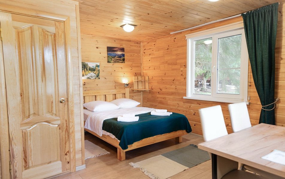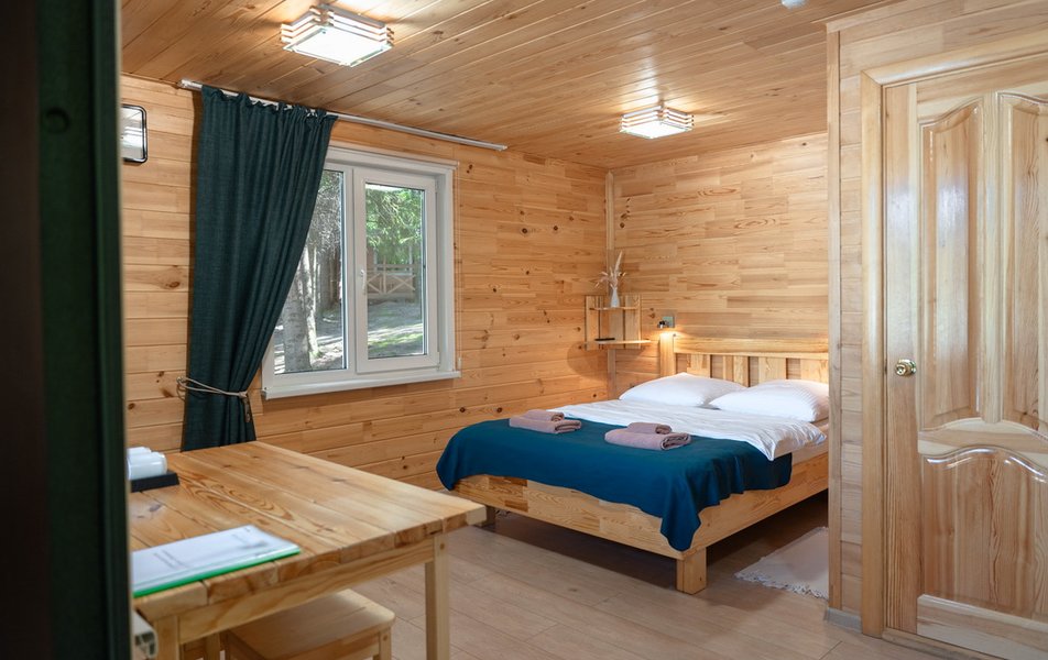 На территории базы предусмотрены варианты размещения на любой вкус. Гостей ждут комфортные «Коттеджи» на 8–12 человек, отдельно стоящие благоустроенные дома категории «Апартаменты», «Люкс» и «Стандарт», а также уютные домики для двоих — от «Стандартных» с видом на реку до двухкомнатных, с раздельными или двуспальными кроватями. Любителям необычных форматов придётся по душе номер «Дуплекс» или «Береговой». Каждое жилое пространство оснащено всем необходимым для спокойного и размеренного отдыха.
