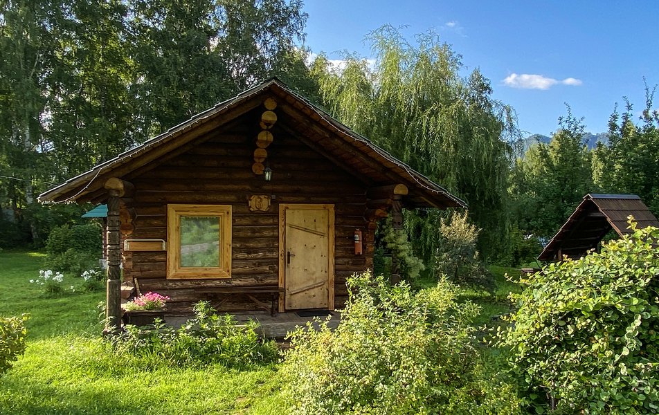 Комплекс занимает обустроенную территорию, расположенную в окружении живописных речных и горных пейзажей. Для размещения гостям предлагаются небольшие деревянные домики, выстроенные из сосны и кедра. Можно снять домик целиком, а можно выбрать только комнату в одном из больших коттеджей или разместиться в палатке на территории базы отдыха. Санузел индивидуальный или же общий и расположен на этаже. Также в номерах и коттеджах есть электрочайники и холодильники.
