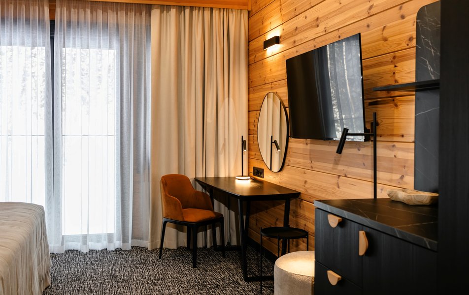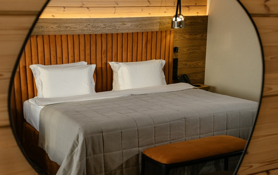 Гостиничный комплекс занимает обширную территорию площадью 14 гектаров. В распоряжении гостей — главный корпус на 58 номеров и 18 отдельных домиков-шале, выполненных из натурального кедра. В каждом номере — продуманный современный дизайн, кондиционер, мини-бар, телевизор и чайная станция. Персональный санузел оснащен душевой кабиной, предметами гигиены, халатами и тапочками. А из окон открываются живописные виды на окрестности.