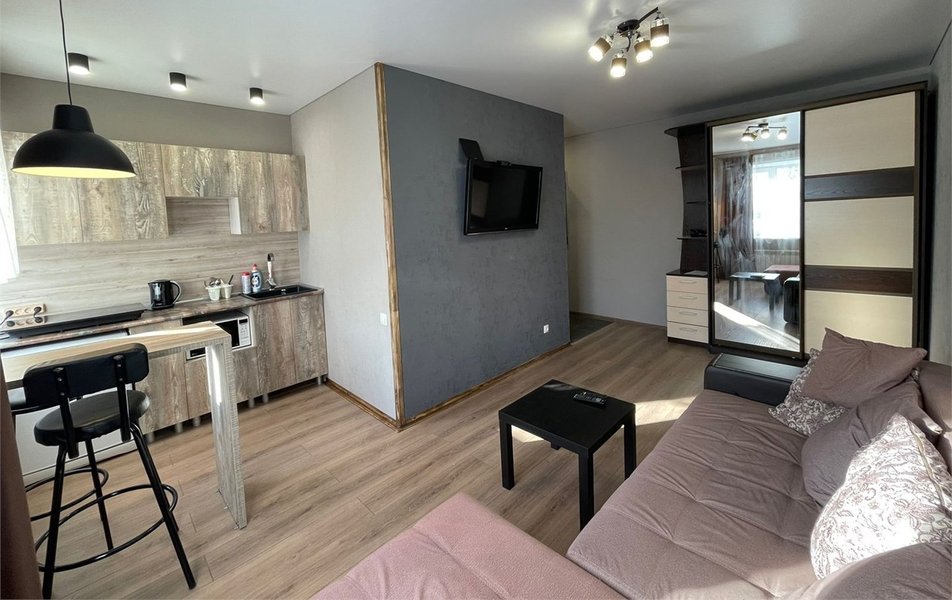 Апартаменты расположены в центральной части Бийска, в районе с хорошей транспортной развязкой. Поблизости — автобусные и трамвайные остановки, что делает передвижение по городу удобным. В шаговой доступности — живописный Петровский бульвар, ЦУМ, Драматический театр, Музей Чуйского тракта. Недалеко до набережной и центрального пляжа. Рядом — разнообразные кафе и супермаркеты, где есть все необходимое. До автобусного и железнодорожного вокзалов — всего пять минут езды на автомобиле.