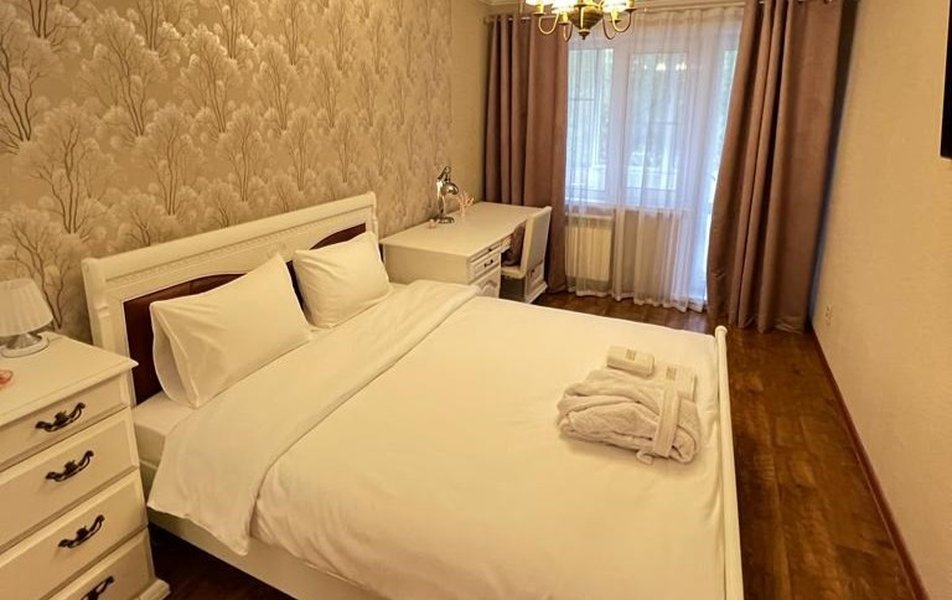 Трехкомнатные апартаменты с балконом в пятиэтажном доме, стоящем на улице Мухачева, предлагают все необходимое для комфортного проживания. Гостей ждут две двуспальные кровати с ортопедическими матрасами и раскладной диван. Кухня оснащена всей необходимой техникой и посудой, есть обеденная зона. В совмещенном санузле с ванной гости найдут гигиенические принадлежности и фен. Также доступны стиральная машина, гладильные принадлежности, предоставляются полотенца и постельное белье. Работает высокоскоростной интернет Wi-Fi, чтобы гости могли всегда оставаться на связи.