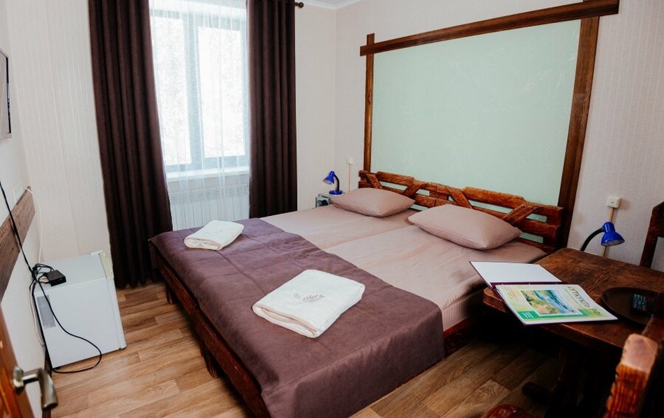 Территория базы ухожена, с благоустроенными дорожками и зонами отдыха. База вмещает до 80 гостей летом и до 50 — зимой. Для размещения предлагается трехэтажный гостиничный корпус, а также отдельно стоящие домики - четыре круглогодичных и восемь летних. Гостиничные номера и круглогодичные дома оборудованы телевизором, холодильником, сейфом и индивидуальным благоустроенным санузлом. В некоторых гостиничных номерах имеется вид на озеро. Круглогодичные дома оснащены печным отоплением и собственной беседкой с мангалом. Летние домики располагают спальными местами и санузлом, а вот душевые находятся на территории.