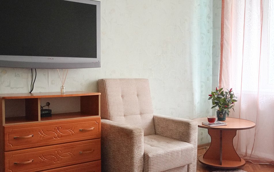 Размещение организовано в жилом доме на улице Профсоюзной. Гостям предлагаются функциональные однокомнатные апартаменты. Планировка включает спальную зону с односпальной кроватью, диваном и креслом, кухню с обеденной группой и оснащенной кухней. В ванной комнате – ванна, стиральная машина, набор полотенец и туалетные принадлежности.