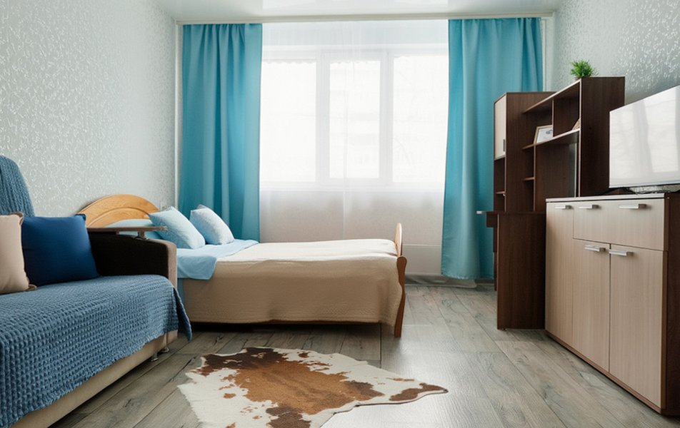 Апартаменты находятся в Тынде, в спокойном районе Амурской области. Вблизи расположены магазины, кафе и остановки транспорта, а также городская администрация, драматический театр, кинотеатр и парковая зона для прогулок. Благодаря близости к улице Красная Пресня добраться до разных частей города легко. Центр с его ключевыми объектами находится всего в пяти минутах ходьбы. Дойти до автостанции можно за восемь минут, до железнодорожного вокзала — пять минут на автомобиле, а дорога до аэропорта занимает от семнадцати до двадцати минут.