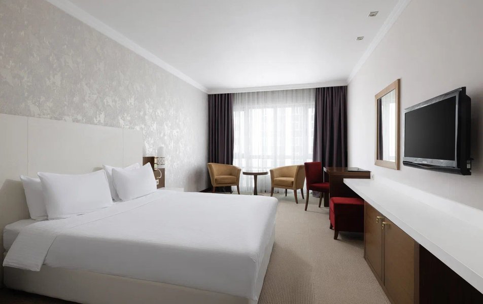 | Рестораны и бары | банкетный зал: основной ресторан, рассчитан на 300-400 мест лобби-бар основной ресторан: завтрак с 07:00 до 10:00 ресторан: «Купол», находится на 32 этаже, часы работы: с 12:00 до 24:00 |